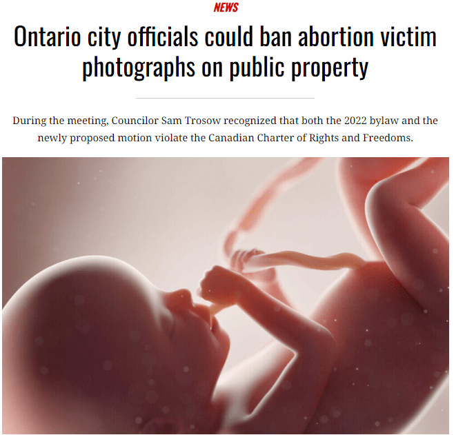 Earlier this week, city councilors in London, ON advanced a dangerous motion to ban fetal imagery on public property. I was interviewed by LifeSiteNews on my deep concerns about this bylaw proposal, and the way it infringes on the Charter right to freedom of expression. You can read the full interview here. If you live … Continue reading Lobbying for Pro-life Free Speech